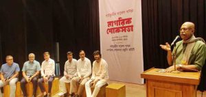 নিজস্ব প্রতিবেদক: সাইফুদ্দিন খালেদ খসরু তাঁর কর্মের মাধ্যমে আমাদের হৃদয়ে বেঁচে থাকবেন। প্রগতিশীল আন্দোলনের কর্মী ও বিশিষ্ট পেশাজীবি সাইফুদ্দিন খালেদ খসরুর শোকসভার শনিবার বিকাল ৪টায় নগরীর থিয়েটার ইনিস্টিউট মিলনায়তনে অনুষ্ঠিত হয়। সাইফুদ্দিন খালেদ খসরু এর নাগরিক শোকসভা কমিটির আহবায়ক অধ্যাপক মহীবুল আজিজ এর সভাপতিত্বে এবং আবৃত্তিশিল্পী ও নাগরিক কমিটির সদস্য মো: মুজাহিদুল ইসলামের সঞ্চালনায় শোকসভায় বক্তব্য রাখেন, সাইফুদ্দিন খালেদ খসরু এর নাগরিক শোকসভা কমিটির সদস্য সচিব মোঃ আতিক, সাবেক ছাত্রনেতা ও ঢাকা মেডিকেল কলেজের অধ্যাপক ডা. ফজলে এলাহী মিলাদ, কবি ও সাংবাদিক অভীক ওসমান, সমাজ সমীক্ষা সংঘের সভাপতি কাজী মাহমুদ ইমাম বিলু, কবি ও সাংবাদিক নাজিমুদ্দীন শ্যামল, শিক্ষাবিদ আজাদ বুলবুল, খেলাঘর চট্টগ্রাম মহানগর কমিটির সাধারণ সম্পাদক বিশ্বজিত বসু, যুব ইউনিয়ন চট্টগ্রাম জেলা কমিটির সভাপতি মোঃ শাহ আলম, উদীচী শিল্পী গোষ্ঠীর চট্টগ্রাম জেলার সাধারণ সম্পাদক এড. অসীম কুমার দাশ, সমাজ সমীক্ষা সংঘের নির্বাহী পরিচালক কল্লোল দাশ, নজরুল সংগীত শিল্পী সংস্থার সিনিয়র সহ সভাপতি এবং বাংলাদেশ সংগীত সংগঠন সমন্বয় পরিষদের চট্টগ্রাম বিভাগীয় সাধারণ সম্পাদক দীপেন চৌধুরি, সম্মিলিত আবৃত্তি জোটের সহ সভাপতি প্রণব চৌধুরী, চট্টগ্রাম বিশ^বিদ্যালয়ের ২১ ব্যাচের শিক্ষার্থী ইউসুফ হোসেন ভুইঁয়া, বিশিষ্ট ব্যাংকার অশ্রুত কুমার চক্রবর্তী, সমাজ সমীক্ষা সংঘের প্রতিষ্ঠাকালীন পরিচালক সুমন চৌধুরী মনি, ২১ ব্যাচের শিক্ষার্থী জহিরুল আলম, সাইফুদ্দিন খালেদ খসরুর কন্যা যাহবা শবনম আভা প্রমুখ।
