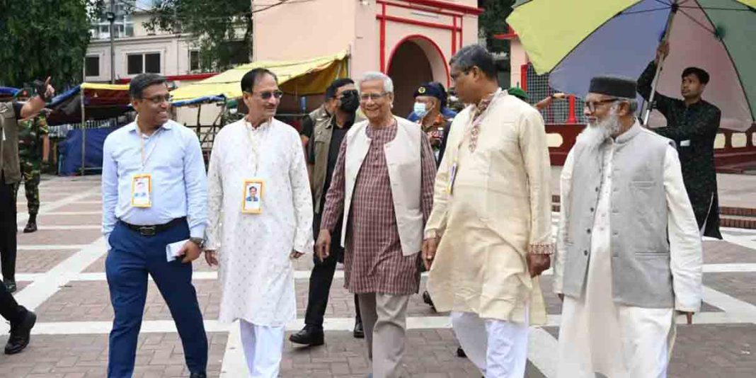 অনলাইন ডেস্ক : রাজধানীর ঢাকেশ্বরী মন্দির পরিদর্শনে গেছেন প্রধান উপদেষ্টা ড. মুহাম্মদ ইউনূস। মঙ্গলবার (১৬ সেপ্টেম্বর) বেলা ১১টার দিকে প্রধান উপদেষ্টা মন্দির পরিদর্শনে যান। এর আগে গতকাল সোমবার বিকেলে রাষ্ট্রীয় অতিথি ভবন যমুনায় প্রধান উপদেষ্টার সঙ্গে সাক্ষাৎ করেন বিভিন্ন পূজা উদযাপন পরিষদের নেতারা। এ সময় তারা প্রধান উপদেষ্টাকে পূজামণ্ডপ পরিদর্শনের আমন্ত্রণ জানান।এ সময় বৈঠকে প্রধান উপদেষ্টা বলেন, আপনাদের সঙ্গে সবসময় দেখা করার ইচ্ছা থাকলেও সুযোগ হয় না। পূজা উপলক্ষ্যে বছরে একবার সামনাসামনি দেখা হওয়ার, কথা বলার সুযোগ হয়। এ সময় দুর্গাপূজার প্রস্তুতি ও সার্বিক অবস্থা সম্পর্কে জানতে চান প্রধান উপদেষ্টা। তখন হিন্দু ধর্মীয় নেতারা জানান, এবার এক হাজারের বেশি পূজামণ্ডপ বেড়েছে।সারা দেশে পূজামণ্ডপ প্রস্তুতের কাজ পুরোদমে এগিয়ে চলছে।
