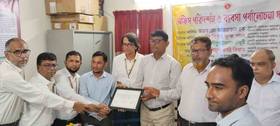 অনলাইন ডেস্ক: জীবন বীমা কর্পোরেশন, সেলস অফিস-৫৭, সুনামগঞ্জ এর অফিস পরিদর্শন এবং ব্যবসা পর্যালোচনা সভা-২০২৫ অনুষ্ঠিত হয়। মঙ্গলবার নিজস্ব কার্যালয়ে (সুরমা ১০/১, কাজীর পয়েন্ট, উকিল পাড়া) অনুষ্ঠিত সভায় প্রধান অতিথি ছিলেন সিলেট রিজিওনাল অফিস ইনচার্জ সহকারী জেনারেল ম্যানেজার মো: আজহারুল হক। বিশেষ অতিথি ছিলেন ম্যানেজার-প্রশাসন বিপ্লব কৃষ্ণ পাল, ডেপুটি ম্যানেজার (অডিট) ফাহিমুল ইসলাম চৌধুরী, জুনিয়র অফিসার ওবায়দুল হক। এছাড়াও উক্ত ব্যবসা পর্যালোচনা সভায় বক্তব্য রাখেন ব্রাঞ্চ ম্যানেজার মো: মহি উদ্দিন, জুনিয়র অফিসার মো: ইউসুফ আলি, উন্নয়ন অফিসার মো: আবু নাসের এবং এজেন্টদের পক্ষে মিস সোনিয়া আক্তার রিমা, মো: বিল্লাল মিয়া, মিসেস সাবিনা ইয়াসমিন, মিসেস কবিতা বেগম, মো: আতাউর রহমান শামীম, মুজিবুর রহমান এবং সম্মানিত গ্রাহকদের পক্ষে বক্তব্য রাখেন সুনামগঞ্জ জেলা পরিষদ সিএ রিমন সরকার ও ব্যবসায়ী মিল্টন তালুকদার প্রমূখ। অনুষ্ঠানের শুরুতে পবিত্র কোরআন থেকে তিলাওয়াত করেন বীমা এজেন্ট মো: বিল্লাল মিয়া এবং পবিত্র গীতা থেকে পাঠ করেন গ্রাহক প্রতিমা দাশ।