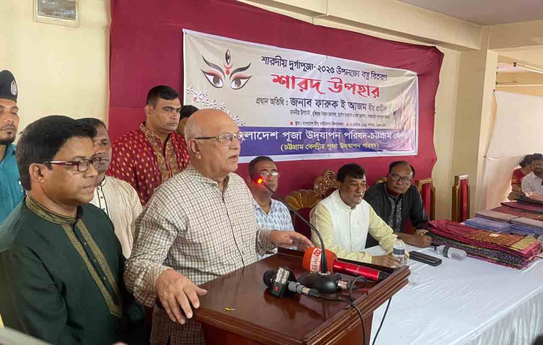 অনলাইন ডেস্ক: মুক্তিযোদ্ধা বিষয়ক উপদেষ্টা ফারুক-ই- আজম বীরপ্রতীক বলেছেন, এইবারের পূজাই পূজার্থীরা যাতে নির্বিঘ্নে ও নিরাপদ পরিবেশে পালন করতে পারে সেজন্য সরকারের পক্ষ্য থেকে সর্বাত্মক প্রচেষ্ঠ অব্যাহত থাকবে। সেজন্য ইতিমধ্যে পূজার নিরপত্তা এবং অন্যান্য আনুসঙ্গিক বিষয়ে সরকারের পক্ষ থেকে সকল কার্যক্রম সম্পন্ন করা হয়েছে। উপদেষ্টা শনিবার বিকালে নগরীর জামালখানে বাংলাদেশ হিন্দু ফাউন্ডেশন মিলনায়তন কক্ষে বাংলাদেশ পূজা উদযাপন পরিষদ চট্টগ্রাম জেলা কর্তৃক আয়োজিত শারদীয় দুর্গাপূজা-২০২৫ উপলক্ষ্যে বস্ত্র বিতরণ অনুষ্ঠানে প্রধান অতিথির বক্তব্যে এসব বলেন।