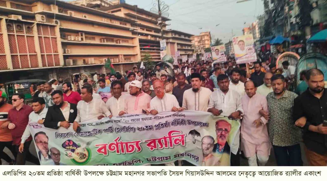 খবর বিজ্ঞপ্তি: এলডিপির ২০তম প্রতিষ্ঠা বার্ষিকী উদ্যাপন করেছে চট্টগ্রাম মহানগর কমিটি। এ উপলক্ষে আজ রোববার বিকেলে চট্টগ্রাম মহানগর এলডিপির উদ্যোগে আনন্দ র্যালী পূর্বক সমাবেশ অনুষ্ঠিত হয়। চট্টগ্রাম মহানগর এলডিপির সভাপতি সৈয়দ গিয়াসউদ্দিন আলমের সভাপতিত্বে, সাধারণ সম্পাদক জাফর আহমেদ চৌধুরীর পরিচালনায় সৈয়দ গিয়াসউদ্দিন আলম বলেন, ডক্টর কর্ণেল অবঃ অলি আহমদ বীর বিক্রমের আদর্শে গঠিত এই দল দুর্নীতি, দুঃশাসন ও ফ্যাসিবাদ বিরোধী অবস্থান নিয়ে জনগণের অধিকার রক্ষায় দৃঢ়ভাবে কাজ করে যাচ্ছে।তিনি বলেন, ফ্যাসিবাদী শক্তির পতনের পর বর্তমান প্রেক্ষাপটে আমাদের দায়িত্ব আরও বেড়েছে। এলডিপি গণতন্ত্র, ন্যায় ও স্বচ্ছ রাজনীতির পথে অবিচলভাবে নেতৃত্ব দেবে। আগামী নির্বাচনে ছাতা প্রতীকের পক্ষে ঘরে ঘরে দূর্গ গড়ে তোলার জন্য নেতাকর্মীদের আহবান জানান তিনি। র্যালী ও সমাবেশে নগরীর বিভিন্ন থানা ওয়ার্ড থেকে এলডিপি ও অঙ্গ সংগঠন গনতান্ত্রিক যুবদল, গনতান্ত্রিক স্বেচ্ছাসেবক দল গণতান্ত্রিক ওলামাদল, গনতান্ত্রিক ছাত্রদল ও শ্রমিকদলের নেতাকর্মীরা অংশ নেন। উপস্থিত ছিলেন কেন্দ্রীয় সদস্য ফাহাদ চৌধুরী দিপু,নগর এলডিপির সহ সভাপতি মাওলানা শাহ আলম আল কাদেরী, মোহাম্মদ উদ্দিন, সাংগঠনিক সম্পাদক নুরুল আসগর চৌধুরী, অর্থ সম্পাদক আবু সৈয়দ, দপ্তর সম্পাদক জাহাঙ্গীর আলম, সহ সাংগঠনিক সম্পাদক মো. ইউসুফ, যুবদলের আজহারুল ইসলাম অপু, এনাম উদ্দিন, মো. করিম, স্বেচ্ছাসেবক দলের সভাপতি বি এম সায়েদুল হক,সি. সহসভাপতি মোজাম্মেল হক, সাধারণ সম্পাদক আব্দুল্লাহ আল নোমান, যুবদলের আবু তৈয়ব, নুরুল আমিন, রায়হান, ছাত্রদলের সভাপতি ফরহাদ, ওলামা দলের মাওলানা ওসমান আলী রেজবি, স্বেচ্ছাসেবক দলের ফরহাদ রানা, আব্দুল হালিম, যুবদলের মারুফ, মো সেলিম,কলিম প্রমূখ। এর আগে লালদিঘীর পাড়ে জেলা পরিষদ ভবনের সামনে থেকে র্যালীটি শুরু হয়ে নগরীর গুরুত্বপূর্ণ সড়ক প্রদক্ষিণ করে কেন্দ্রীয় শহীদ মিনারে এসে শেষ হয়।