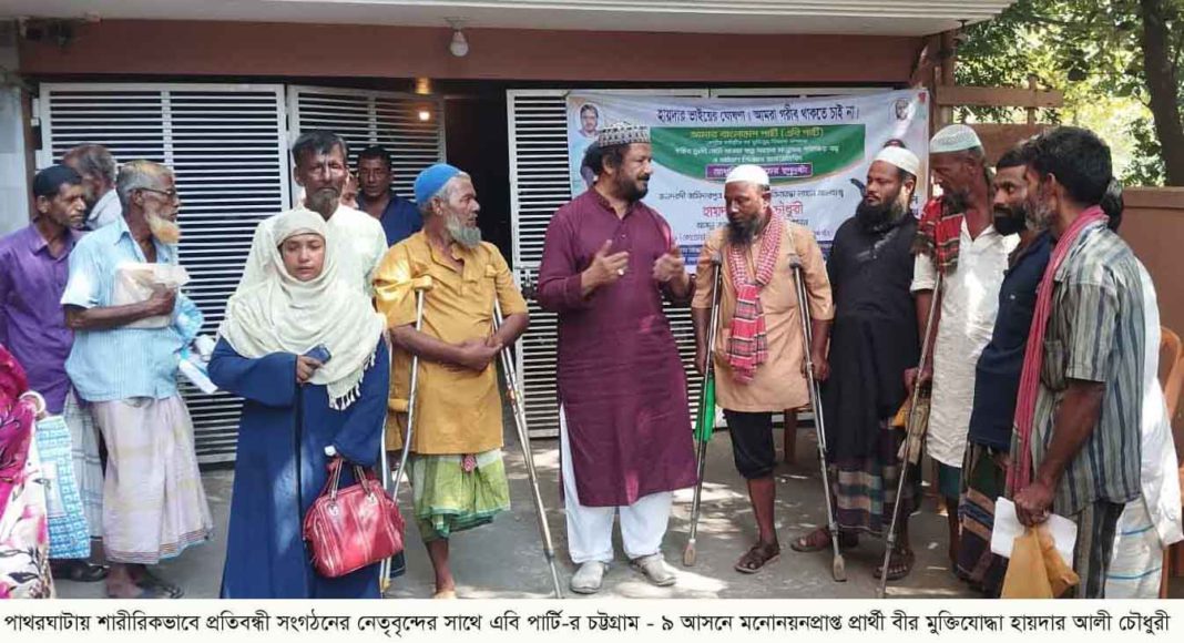 খবর বিজ্ঞপ্তি: আমার বাংলাদেশ পার্টি (এবি পার্টি)-র চট্টগ্রাম – ৯ আসনে মনোনয়নপ্রাপ্ত প্রার্থী বীর মুক্তিযোদ্ধা হায়দার আলী চৌধুরী শুক্রবার সকাল এগারোটায় নির্বাচনী এলাকার পাথরঘাটা ওয়ার্ডে শারীরিকভাবে প্রতিবন্ধী সংগঠনের নেতৃবৃন্দের সাথে অনুষ্ঠিত উঠান বৈঠকে বলেন, দেশের এই ক্রান্তিকালে অন্তর্বর্তী সরকারের আমলে লক ডাউন ও আগুন সন্ত্রাস করে যারা কর্মসূচি দিয়ে অসহায় গরীব দুঃখী খেটে খাওয়া মেহনতি মানুষ বিশেষ করে শারীরিকভাবে প্রতিবন্ধী মানুষদের অর্থকষ্ট ও বিড়ম্বনা বাড়িয়ে তুলেছে, তারা দেশ ও জাতির শত্রু, জনগণের শত্রু। তাদের বিরুদ্ধে জনগণকে ঐক্যবদ্ধভাবে প্রতিরোধ গড়ে তুলতে হবে। প্রতিবন্ধীদের প্রতি সদয় হবার জন্য তিনি সকল মহলের প্রতি আন্তরিক হবার জন্য আহ্বান করেন এবং লকডাউন আগুন সন্ত্রাসের মতো হিংসাত্মক কর্মসূচি পরিহার করার জন্য অনুরোধ করেন। সভায় অন্যান্যের মধ্যে বক্তব্য রাখেন প্রতিবন্ধী নুর হোসেন, অমল দাশ ও কল্পনা আক্তার।