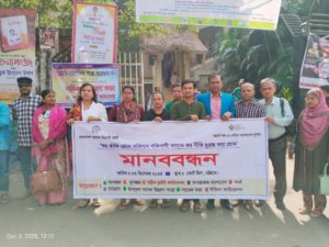 সংবাদ বিজ্ঞপ্তি: উপকূল সমাজ উন্নয়ন সংস্থার উদ্যোগে এবং বাংলাদেশ তামাক বিরোধী জোট ও ডাব্লিউবিবি ট্রাস্টের সহায়তায় একটি শক্তিশালী তামাক কর নীতিমালা প্রণয়ন ও বাস্তবায়নের দাবীতে মানববন্ধন অনুষ্ঠিত হয়। গত ৩ ডিসেম্বর কোর্ট হিল চত্বরে অনুষ্ঠিত এ মানববন্ধনে সংশপ্তকের প্রধান নির্বাহী লিটন চৈাধুরী, স্বপ্নিল ব্রাইট ফাউন্ডেশনের নির্বাহী পরিচালক মোহাম্মদ আলী শিকদার, পার্ক এর প্রধান নির্বাহী নজরুল ইসলাম মান্না, ঈষিকা ফাউন্ডেশনের প্রধান নির্বাহী জহুর ইসলাম, মমতার প্রোগ্রাম ম্যানেজার মুহিদ, অপারাজেয় বাংলাদেশের জিনাত আরা বেগম, ঊষা নারী উন্নয়ন সংস্থার প্রোগ্রাম ম্যানেজার পিযুষ দাশ গুপ্ত, কোডেকের অলকা চৌধুরী, ডাপার কাজী শাহ কামাল, সিডিসি, ইকো ফাউন্ডেশন এবং সবুজের যাত্রার প্রতিনিধিগন অংশগ্রহন করেন।