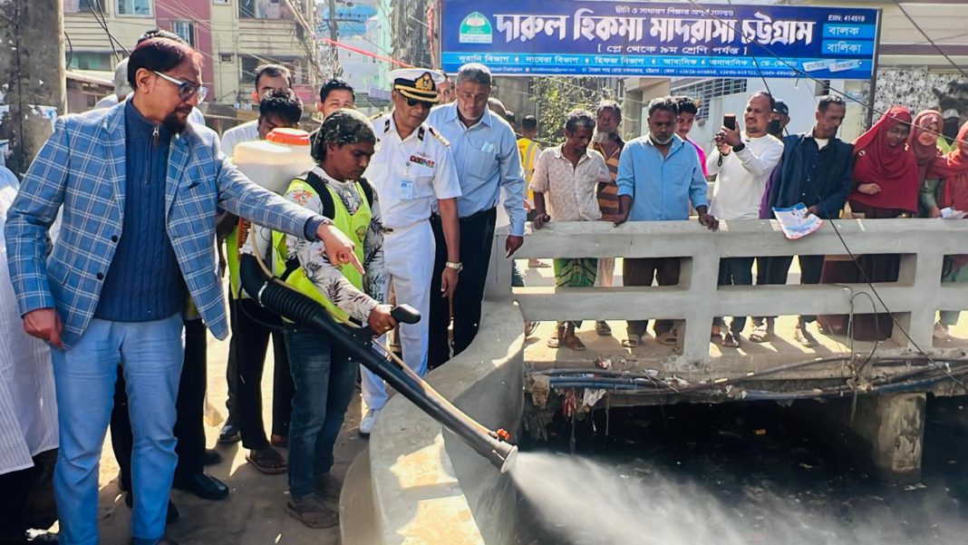 নিজস্ব প্রতিবেদক: ডেঙ্গু ও চিকুনগুনিয়াসহ মশাবাহিত রোগ প্রতিরোধে চট্টগ্রাম নগরজুড়ে বিশেষ মশক নিধন ক্রাশ প্রোগ্রাম পরিচালনা করছে চট্টগ্রাম সিটি করপোরেশন (চসিক)। এ কার্যক্রমের আওতায় নগরীর প্রতিটি ওয়ার্ডে ধারাবাহিকভাবে মশক নিধন অভিযান অব্যাহত থাকবে বলে জানিয়েছেন চট্টগ্রাম সিটি মেয়র ডা. শাহাদাত হোসেন। সোমবার চট্টগ্রাম সিটি করপোরেশনের উদ্যোগে ১৭ নম্বর পশ্চিম বাকলিয়া ওয়ার্ডে আয়োজিত মশক নিধন ক্রাশ প্রোগ্রাম অনুষ্ঠানে প্রধান অতিথির বক্তব্যে মেয়র এসব কথা বলেন।