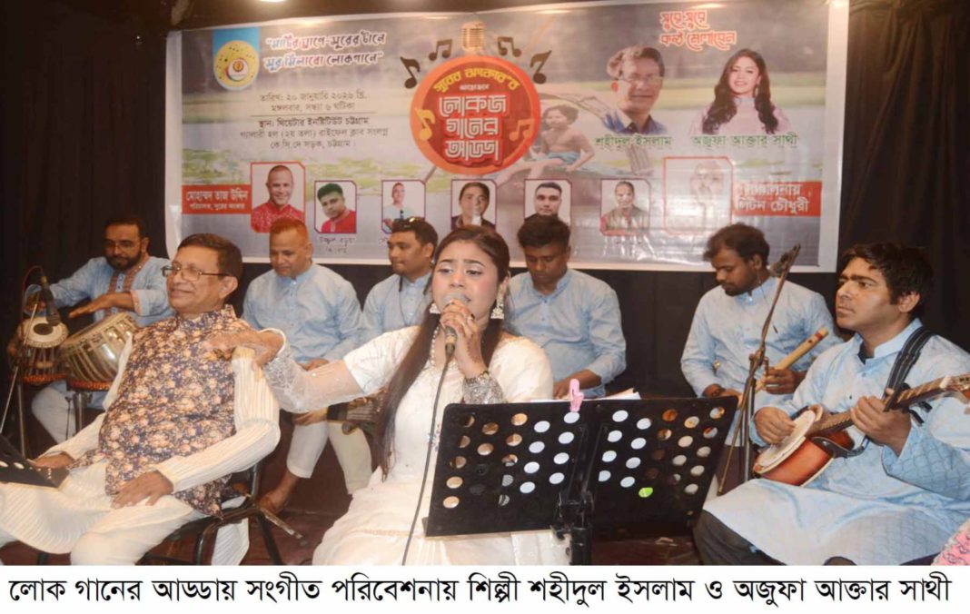 খবর বিজ্ঞপ্তি: লোকজ সংস্কৃতির প্রবাহমান ধারাকে চিরায়তভাবে বজায় রাখার জন্য ২০ জানুয়ারি ৬ টায় নগরীর থিয়েটার ইনস্টিটিউট গ্যালারি হলে ‘মাটির ঘ্রাণে-সুরের টানে’ সুর মিলাবো লোকগানে এই শ্লোগানে সুরের ঝংকারের আয়োজনে এক দ্বৈত লোকজ গানের আড্ডা অনুষ্ঠিত হয়। এতে সংগীত পরিবেশন করেন শিল্পী শহীদুল ইসলাম ও অজুফা আক্তার সাথী। সুরের ঝংকারের পরিচালক মোহাম্মদ তাজউদ্দিনের সভাপতিত্বে এতে প্রধান অতিথি হিসেবে উপস্থিত ছিলেন রিয়াজ ওয়ায়েজ। উদ্বোধন করেন সাউন্ড টার্চের কর্ণধার ইলিয়াস ইলু। লিটন চৌধুরীর সঞ্চালনায় এতে বক্তব্য রাখেন সঙ্গীত শিল্পী আবদুর রহিম, কল্যাণী ঘোষ, শিমুল শীল, গীতা আচার্য্য, সংগঠক জামাল আহমেদ, আবু তাহের চৌধুরী, শিল্পী এড. কামরুল আজম চৌধুরী টিপু, সাংবাদিক কামাল উদ্দিন, সেলিম আকতার পিয়াল, শিল্পী সামশুল হায়দার তুষার, সাংবাদিক আবছার উদ্দিন অলি, বাউল মোজাহের, লায়ন ডা. আর.কে রুবেল, প্রবীর দত্ত সাজু, ইলিয়াস রিপন, আসিফ ইকবাল, জাহিদ তানসির, শাকিল আরাফাত প্রমুখ। যন্ত্রসঙ্গীতে ছিলেন তবলা সৌমেন ভট্টাচার্য্য, বাঁশি সুমন কুমার নাথ, কী-বোর্ড উজ্জ্বল বড়ুয়া, প্যাড টিটু দাশ, ঢোল শিবু দাশ।