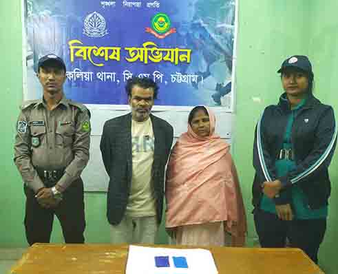 নিজস্ব প্রতিবেদক: চট্টগ্রাম মহানগরে দুই মাদক কারবারিকে গ্রেপ্তার করেছে পুলিশ। এসময় তাদের জুতার সোলের ভেতরে অভিনব কায়দায় রাখা ৮০০ পিস ইয়াবা উদ্ধার করা হয়। বাকলিয়া থানাধীন এলাকায় বৃহস্পতিবার রাতে শহীদ বশরুজ্জামান গোলচত্বরের পুলিশ বক্সের সামনে সড়কে অভিযান চালিয়ে তাদের গ্রেফতার করা হয়। এরা হল, নরসিংদী সদর উপজেলার পশ্চিম কান্দাপাড়া এলাকার খোরশেদা বেগম (৪৫) ও শাহ জালাল মিয়া (৫২)।