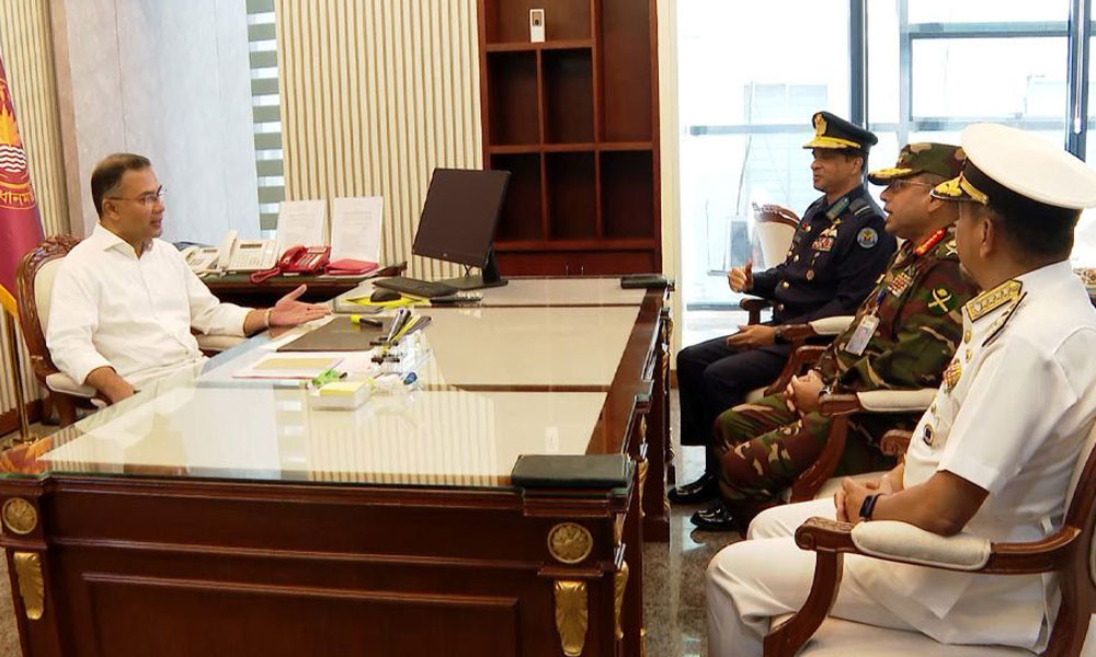 অনলাইন ডেস্ক: প্রধানমন্ত্রী তারেক রহমানের সঙ্গে সৌজন্য সাক্ষাৎ করেছেন তিন বাহিনীর প্রধানরা। বৃহস্পতিবার (১৯ ফেব্রুয়ারি) সকালে এই সাক্ষাৎকার অনুষ্ঠিত হয়।এর আগে সকালে এনএসআই ও ডিজিএফআইয়ের মহাপরিচালকের সঙ্গে পৃথকভাবে বৈঠক করেছেন তিনি। এদিকে, দ্বিতীয় দিনের মতো আজ সচিবালয়ে গেছেন প্রধানমন্ত্রী তারেক রহমান।এদিন ফ্যামিলি কার্ড নিয়ে আন্তঃমন্ত্রণালয় বৈঠকে যোগ দেবেন তিনি। বৃহস্পতিবার (১৯ ফেব্রুয়ারি) সকাল ৯টা ১০ মিনিটে সচিবালয়ে প্রবেশ করেন তিনি।