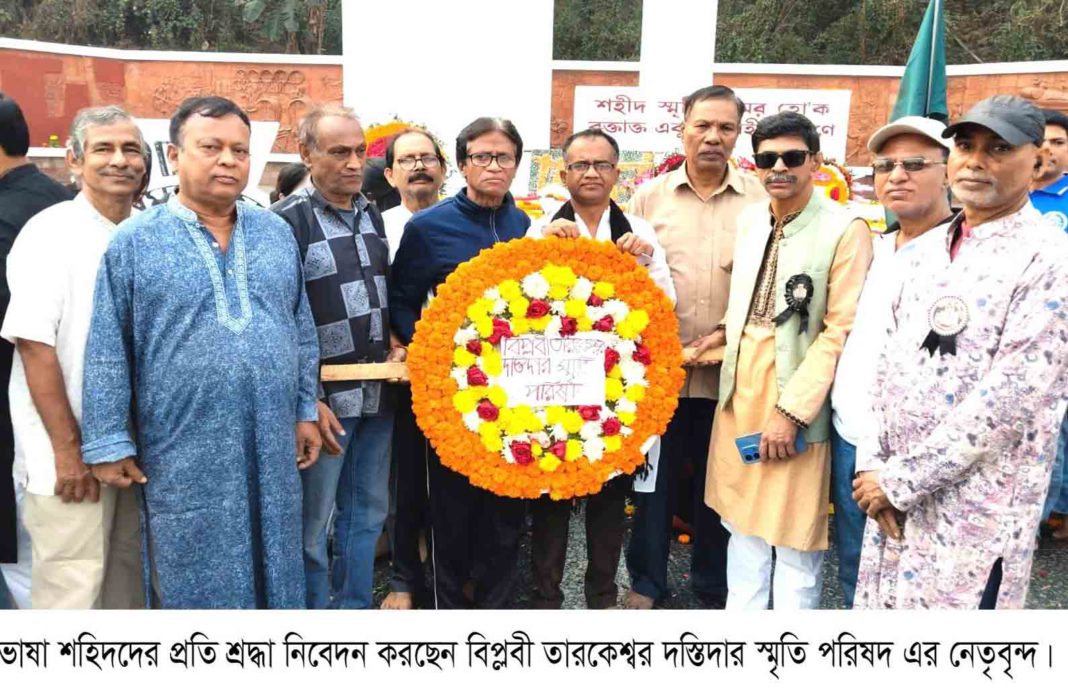 খবর বিজ্ঞপ্তি: বিপ্লবী তারকেশ্বর দস্তিদার স্মৃতি পরিষদের উদ্যোগে মহান শহিদ দিবস ও আন্তর্জাতিক মাতৃভাষা দিবস উপলক্ষে আজ শনিবার সকাল ৮টায় চট্টগ্রাম কেন্দ্রীয় শহিদ মিনারে ভাষা শহিদদের প্রতি পুষ্পস্তবক অর্পণের মাধ্যমে গভীর শ্রদ্ধা নিবেদন করা হয়। এ উপলক্ষে এক আলোচনা সভারও আয়োজন করা হয়। পরিষদের সাধারণ সম্পাদক ইঞ্জিনিয়ার সিঞ্চন ভৌমিকের সভাপতিত্বে অনুষ্ঠিত আলোচনা সভায় বিশেষ আলোচক হিসেবে উপস্থিত ছিলেন রাজনীতিবিদ মোহাম্মদ জসিম,টিভি ও বেতার শিল্পী কাজল দত্ত,সমাজ সেবক দীপংকর চৌধুরী কাজল, রাজনীতিবিদ মিটুল দাশগুপ্ত, সাংবাদিক স্বপন মল্লিক, মোহাম্দ রহিম,প্রবীর দাশগুপ্ত নন্তু, কমল বড়ুয়া, ভগবান বোস,এবং সাংস্কৃতিক ব্যক্তিত্ব সজল দাশসহ অন্যান্য বিশিষ্টজন। বক্তারা তাঁদের বক্তব্যে বলেন, ভাষা আন্দোলনের গৌরবময় পথ ধরেই মহান মুক্তিযুদ্ধ সংঘটিত হয়েছে এবং তার মধ্য দিয়ে আমরা অর্জন করেছি স্বাধীন ও সার্বভৌম রাষ্ট্র বাংলাদেশ। ভাষা শহিদদের আত্মত্যাগ আমাদের জাতির ইতিহাসে চির অম্লান হয়ে থাকবে এবং যুগের পর যুগ, শতাব্দীর পর শতাব্দী আমাদের হৃদয়ে তারা চির জাগ্রত থাকবেন। বক্তারা দুঃখ প্রকাশ করে বলেন, ভাষা আন্দোলনের ৭৪ বছর এবং স্বাধীনতার ৫৫ বছর অতিক্রান্ত হলেও এখনো ভাষা শহিদদের আত্মত্যাগের যথাযথ মূল্যায়ন সর্বক্ষেত্রে প্রতিফলিত হয়নি। দেশে এখনো বিভিন্ন স্থানে ইংরেজি ভাষায় সাইনবোর্ড ব্যবহার, বিয়ের নিমন্ত্রণপত্রে ইংরেজির প্রাধান্য এবং উচ্চ আদালতে বাংলা ভাষার পূর্ণাঙ্গ ব্যবহার চালু না হওয়ায় তাঁরা গভীর উদ্বেগ প্রকাশ করেন। পরিশেষে বক্তারা একমাত্র বিদেশিদের সঙ্গে যোগাযোগ ছাড়া রাষ্ট্রের সকল দাপ্তরিক কার্যক্রমে বাংলা ভাষার বাধ্যতামূলক ব্যবহার নিশ্চিত করার জোর দাবি জানান। তাঁরা আরও বলেন, বিশ্বের উন্নত দেশগুলো তাদের নিজ নিজ মাতৃভাষার মাধ্যমে শিক্ষা, চিকিৎসা, বিজ্ঞান গবেষণা ও রাষ্ট্রীয় সকল কার্যক্রম পরিচালনা করে থাকে। তাই আমাদেরও মাতৃভাষা বাংলার সর্বস্তরে প্রয়োগ নিশ্চিত করে ভাষা শহিদদের আত্মত্যাগের প্রতি প্রকৃত সম্মান প্রদর্শন করতে হবে।