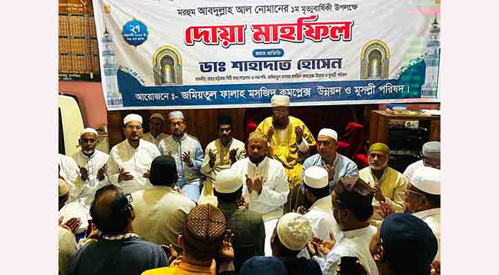 দোয়া মাহফিলে মরহুম আবদুল্লাহ আল নোমানের আত্মার মাগফেরাত কামনা করে বিশেষ দোয়া করা হয়। এছাড়া শহীদ রাস্ট্রপতি জিয়াউর রহমান ও বেগম খালেদা জিয়ার আত্মার মাগফিরাত কামনা এবং প্রধানমন্ত্রী তারেক রহমানসহ জিয়া পরিবারের সদস্যদের সুস্বাস্থ্য ও দীর্ঘায়ু কামনা করে মোনাজাত করা হয়।মোনাজাত পরিচালনা করেন মসজিদের খতিব মাওলানা আবু তালেব মোহাম্মদ আলাউদ্দীন।