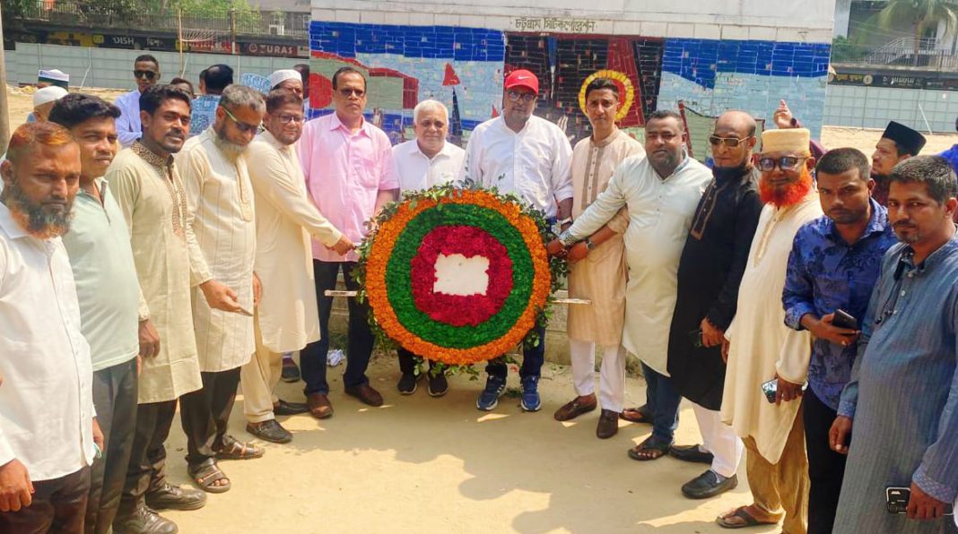 খবর বিজ্ঞপ্তি: চট্টগ্রাম মহানগর বিএনপির সাবেক যুগ্ন সম্পাদক ও বাংলাদেশ জাতীয়তাবাদী যুবদল কেন্দ্রীয় সংসদের সাবেক নির্বাহী সদস্য, সাবেক ছাত্রনেতা সাহেদ বক্সের নেতৃত্বে বৃহস্পতিবার (২৬ মার্চ) মহান স্বাধীনতা দিবসে স্বাধীনতার ঘোষক শহীদ প্রেসিডেন্ট জিয়াউর রহমান বীর উত্তমের স্মৃতি বিজড়িত’ মুক্তিযুদ্ধের প্রথম বিদ্রোহ প্রতিরোধ স্থান, চট্টগ্রাম নগরীর ষোলশহর দুই নং গেটেস্থ বিপ্লব উদ্যানে পুষ্পস্তবক অর্পণ করা হয়। এতে কোতোয়ালি থানার আওতাধীন ২১ নং জামাল খান ওয়ার্ড সহ বিভিন্ন পর্যায়ের বিএনপি অঙ্গ ও সহযোগী সংগঠনের নেতৃবৃন্দ উপস্থিত ছিলেন।