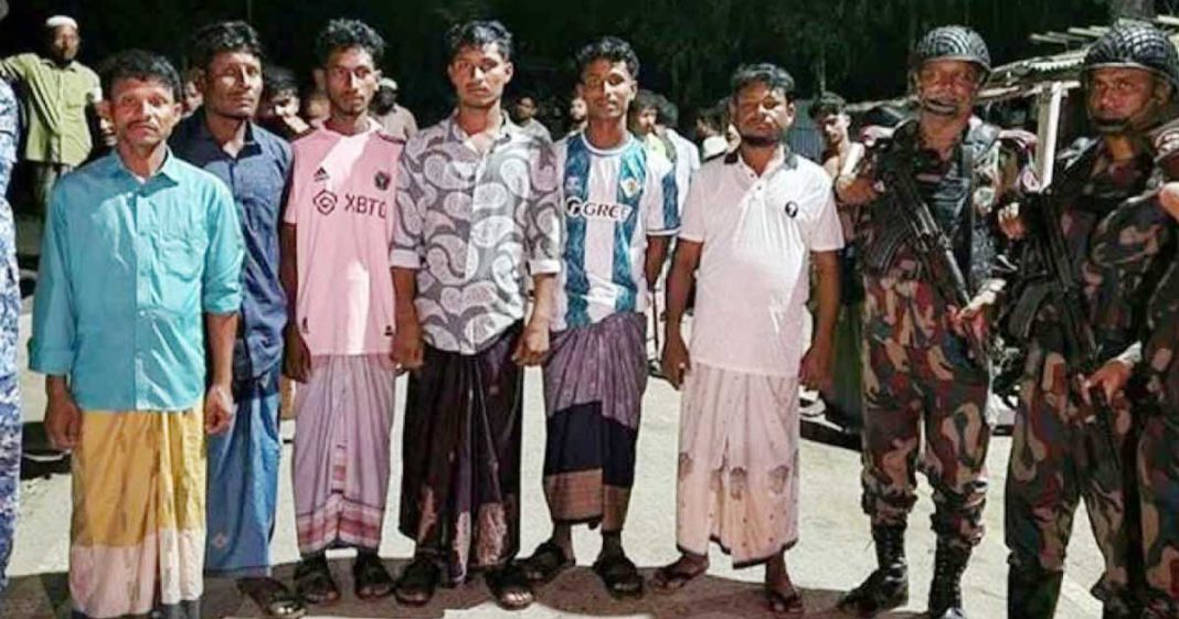 টেকনাফ প্রতিনিধি: মিয়ানমারের সশস্ত্র বিচ্ছিন্নতাবাদী গোষ্ঠী আরাকান আর্মির হাতে আটক ১৪ বাংলাদেশি জেলে তিনদিন পর নিরাপদে মুক্তি পেয়ে নিজ বাড়িতে ফিরে আসেন। মঙ্গলবার (৩১ মার্চ) রাত সাড়ে ১০টার দিকে তারা টেকনাফের শাহপরীর দ্বীপের পশ্চিমপাড়া ঘাট দিয়ে তিনটি নৌকাসহ দেশে প্রবেশ করেন। তবে তারা কি প্রক্রিয়ায় দেশে ফিরেছেন তা জানা যায়নি। এর আগে, শনিবার (২৮ মার্চ) সকালে নাইক্ষ্যংদিয়া নাফ নদীর মোহনা এলাকায় মাছ ধরার সময় তিনটি নৌকাসহ ১৪ জেলেকে আটক করে নিয়ে যায় আরাকান আর্মির সদস্যরা।ফিরে আসা জেলেদের একজন, শাহপরীর দ্বীপের বাসিন্দা মহিউদ্দিন জানিয়েছেন, আটক অবস্থায় তারা তিনদিন মানবেতর জীবনযাপন করেছেন। পরে মঙ্গলবার রাতে আরাকান আর্মির সদস্যরা তাদের নৌকাসহ ছেড়ে দেয়। এরপর তারা নিজ উদ্যোগে বাংলাদেশে ফিরে আসতে সক্ষম হন।টেকনাফ উপজেলা সিনিয়র মৎস্য কর্মকর্তা উম্মুল ফারাহ তাজকিরা জানিয়েছেন, আটক জেলেরা নিরাপদে দেশে ফিরে এসেছে বলে তিনি অবগত হয়েছেন।