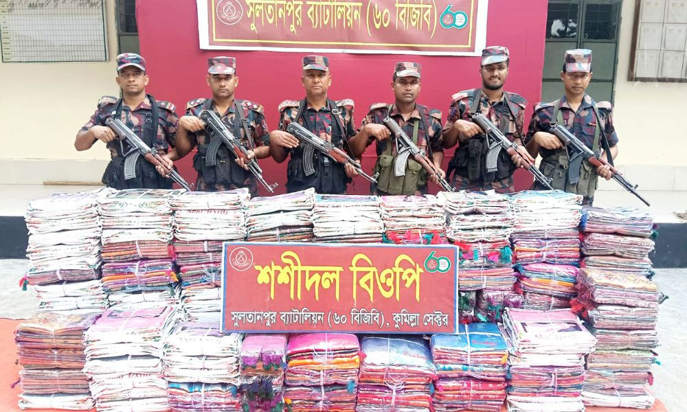 অনলাইন ডেস্ক: কুমিল্লার ব্রাক্ষণপাড়ায় অর্ধকোটি টাকা মূল্যের ভারতীয় অবৈধ শাড়ি জব্দ করেছে বর্ডার গার্ড বাংলাদেশ (বিজিবি)। উপজেলার শশীদল বিওপির দায়িত্বপূর্ণ সীমান্ত পিলার ২০৬১-৪-এস সংলগ্ন বাংলাদেশের অভ্যন্তরে দক্ষিণ তেতাভূমি এলাকা থেকে এসব অবৈধ শাড়ি জব্দ করা হয়। তবে কাউকে আটক করতে পারেনি বিজিবি।বৃহস্পতিবার (২ এপিল) দুপুরে সুলতানপুর ব্যাটালিয়ন (৬০ বিজিবি) ব্যাটালিয়ানের অধিনায়ক লে. কর্নেল এস এম শরিফুল ইসলাম এ তথ্য নিশ্চিত করেছেন।তিনি জানান, গোয়েন্দা তথ্যের ভিত্তিতে বুধবার দিবাগত রাতে পৌনে ১টার দিকে ব্রাক্ষণপাড়ার শশীদল বিওপির টহলদল সীমান্ত পিলার ২০৬১-৪-এস এর শুন্য লাইন হতে আনুমানিক ৫০ গজ বাংলাদেশের অভ্যন্তরে একটি বিশেষ অভিযান চালানো হয়। এ সময় দক্ষিণ তেতাভূমি এলাকায় ভারতীয় অবৈধ ৬৯৩ পিস শাড়ি জব্দ করা হয়। জব্দকৃদ এসব শাড়ির বর্তমান আনুমানিক বাজার মূল্য ৫৮ লাখ ৯০ হাজার ৫০০ টাকা। শাড়িগুলো কুমিল্লা কাষ্টমস্ অফিসে জমা দেওয়া হয়েছে।অধিনায়ক লে. কর্নেল এস এম শরিফুল ইসলাম বলেন, ‘নিরাপত্তা রক্ষা ও চোরাচালান প্রতিরোধে সীমান্তে আমাদের আভিযানিক কার্যক্রম ও গোয়েন্দা তৎপরতা জোরদার করা হয়েছে এবং এ অভিযান অব্যাহত থাকবে।’