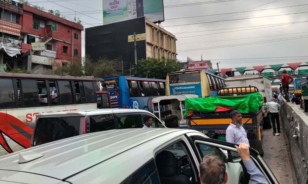 ঈদের ছুটির পরে শুক্রবারেও বিভিন্ন শিল্প প্রতিষ্ঠান খোলা থাকায় যানজটে ভোগান্তিতে পড়েছেন কর্মস্থলগামী মানুষ। দীর্ঘ সময় স্থির হয়ে থাকায় যাত্রীদের ভোগান্তি বাড়ার পাশাপাশি জ্বালানি ব্যয়ও বৃদ্ধি পায় বলে পরিবহন সংশ্লিষ্টরা জানান।