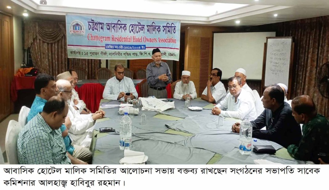 খবর বিজ্ঞপ্তি: চট্টগ্রাম আবাসিক হোটেল মালিক সমিতির মাসিক আলোচনা সভা সম্প্রতি ষ্টেশন রোডস্থ এশিয়ান এস.আর. হোটেলে সংগঠনের সভাপতি সাবেক কমিশনার আলহাজ্ব হাবিবুর রহমান এর সভাপতিত্বে অনুষ্ঠিত হয়। সাধারণ সম্পাদক আলহাজ্ব নুরুল কবির এর সঞ্চালনায় অন্যান্যদের মধ্যে বক্তব্য রাখেন- সংগঠনের উপদেষ্টা আলাহাজ্ব মোঃ ছালামত আলী, মোহাম্মদ আবুল কদর, সালেহ আহমেদ সোলেমান, আবু বকর সিদ্দিকি, সহ সভাপতি মোস্তাফিজুর রহমান চৌধুরী, লায়ন নুরুল আবছার, মোহাম্মদ এয়াকুব, আলহাজ্ব মোঃ ইব্রাহিম, অর্থ সম্পাদক মাওলানা আ.ন.ম আবদুশ শাকুর, লায়ন মোঃ মাহতাব উদ্দিন, জিয়াউর রহমান, মোঃ হারুন অর রশিদ, মাহফুজ কামাল, রফিক উদ্দিন, মোঃ ইউছুফ আলী, সাজ্জাদুল করিম টিংকু প্রমুখ। সভায় সংগঠনের মিলন মেলা ও সদস্য সংগ্রহ অভিযান সহ আগামী অর্থ বছরের ভ্যাট-ট্যাক্স সংক্রান্ত আলোচনা হয়।