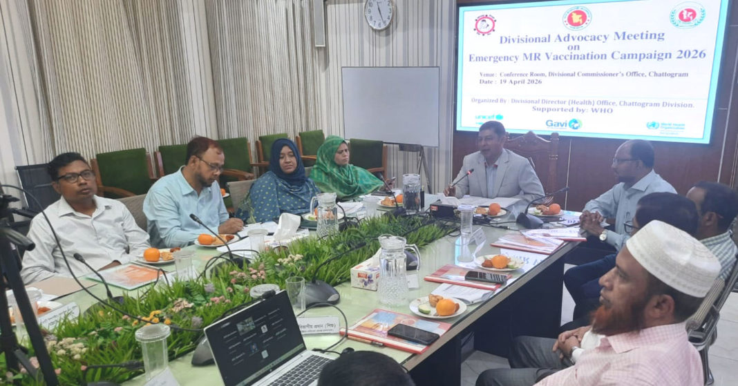নিজস্ব প্রতিবেদক: চট্টগ্রাম বিভাগীয় কমিশনার ড. মোঃ জিয়াউদ্দীন বলেছেন, দেশে হামের প্রাদুর্ভাব রোধকল্পে বর্তমান সরকার জরুরী ভিত্তিতে সময়োপযোগী সিদ্ধান্ত গ্রহণ করেছেন। ৬ মাস থেকে ৫৯ মাস বয়সী সকল শিশুকে হাম-রুবেলার টিকাদান কর্মসূচির অন্তর্ভুক্ত করা সম্ভব হলে হাম ছড়ানোর আর কোনো সুযোগ থাকবে না। তবে ঝুঁকির্পর্ণ ও দুর্গম এলাকাসহ সব জায়গায় এ বয়সের কোন শিশু যাতে হাম-রুবেলার টিকা থেকে বাদ যা পড়ে সে লক্ষ্যে সংশ্লিষ্ট সকলকে আন্তরিকভাবে কাজ করতে হবে। হাম নিমূলে সর্বত্র সচেতনতা সৃষ্টির বিকল্প নেই। হাম-রুবেলার টিকা নিয়ে কেউ গুজব ও অপপ্রচার ছড়ালে ব্যবস্থা নেয়া হবে, এ ব্যাপারে সতর্ক থাকতে হবে। হাম-রুবেলার জরুরী টিকাদান ক্যাম্পেইন-২০২৬ উপলক্ষে আজ রোববার সকাল ১১টায় বিভাগীয় কমিশনার কর্যালয়ের কনফারেন্স হলে বিভাগীয় স্বাস্থ্য পরিচালক কার্যালয় আয়োজিত বিভাগীয় পর্যায়ের অ্যাডভোকেসী সভায় সভাপতির বক্তব্যে তিনি এসব কথা বলেন।