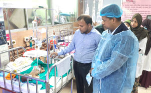 এ সময় শিশুটির চিকিৎসার খোঁজখবর নেন এবং প্রসুতি মায়ের হাতে নগদ টাকা, জামা-কাপড়, বেড-বিছানা ও সামগ্রী খাদ্য সামগ্রী তুলে দেন মানবিক ডিসি। গত ১৬ এপ্রিল বৃহস্পতিবার গর্ভজনিত তীব্র ব্যাথা নিয়ে চট্টগ্রাম মেডিকেল কলেজ (চমেক) হাসপাতালের গাইনী ওয়ার্ডে ভর্তি হন অসহায় ভবঘুরে মোছাম্মৎ শাহনাজ বেগম শেলী (২২)। পরবর্তীতে সিজারিয়ান অপারেশনের মাধ্যমে শাহনাজ কন্যা সন্তান প্রসব করেন। জন্মের পর পর শিশুটি জন্ডিসে আক্রান্ত হওয়ায় গতকাল ২০ এপ্রিল সোমবার রাতে হাসপাতালের ৩২ নম্বর ওয়ার্ডের নিউনেটোলজি বিভাগে ভর্তি করা হয়। ঐদিন থেকে নবজাতকটিকে ফটোথেরাপীর মাধ্যমে চিকিৎসা দেয়া হচ্ছে। শিশুটিকে বাঁচাতে অসহায় প্রসূতি মায়ের আকুতির কথা শুনে সহযোগিতা দ্রুত হাসপাতালে ছুটে গিয়ে আর্থিক সহযোগিতা প্রদান করেন মানবিক ডিসি মোহাম্মদ জাহিদুল ইসলাম মিঞা। চমেক হাসপাতালের নিউনেটোলজি বিভাগের বিভাগীয় প্রধান অধ্যাপক ডা. মোহাম্মদ শাহীনসহ ওয়ার্ডের অন্যান্য চিকিৎসক ও জেলা প্রশাসনের এক্সিকিউটিভ ম্যাজিস্ট্রেটগন এসময় উপস্থিত ছিলেন।