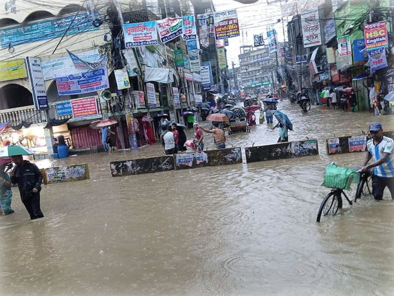 সরেজমিনে নগরীর প্রবর্তক মোড় ও চকবাজার এলাকায় দেখা যায়, টানা বৃষ্টিতে জলাবদ্ধতা সৃষ্টি হয়ে কোমর পরিমাণ পানি জমে গেছে। সড়ক পানিতে ডুবে যাওয়ার কারণে তেমন গণপরিবহন চলতে দেখা যায়নি। দুই একটি চললেও সেখানে দ্বিগুনের বেশি ভাড়া চাওয়া হচ্ছে। উপায় না পেয়ে রিকশা ও ভ্যানগাড়িতে চড়ে অনেককে কর্মস্থলে যেতে দেখা গেছে। কোমর পরিমাণ পানিতেই অনেককে হেঁটে গন্তব্যস্থলে যেতেও দেখা গেছে।