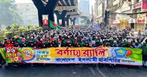 ৫৪তম বিজয় দিবস উপলক্ষ্যে বাংলাদেশ ইসলামী ছাত্রশিবির চট্টগ্রাম মহানগর এ-র্যালির আয়োজন করে। সকাল ৯টার দিকে বিভিন্ন স্থান থেকে নেতা-কর্মীরা ক্ষুদ্র ক্ষুদ্র মিছিল নিয়ে নগরীর লালখান বাজার এলাকায় জড়ো হয় এবং পরবর্তীতে সেক্রেটারি জেনারেল জাহিদুল ইসলাম উপস্থিত হলে র্যালিটি সেখান থেকে নগরীর বিভিন্ন সড়ক প্রদক্ষিন করে ২ নম্বর গেট এলাকায় গিয়ে সংক্ষিপ্ত সমাবেশের মাধ্যমে শেষ হয়।উক্ত সমাবেশে আরো বক্তব্য রাখেন ছাত্রশিবির চট্টগ্রাম মহানগর দক্ষিণের সভাপতি মু. শহীদুল ইসলাম, মহানগর উত্তরের সভাপতি ফখরুল ইসলাম ও চট্টগ্রাম বিশ্ববিদ্যালয় সভাপতি নাহিদুল ইসলাম।