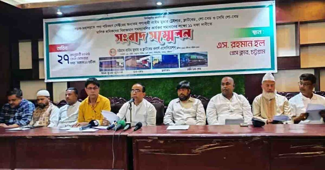 তিনি বলেন, দেশের পণ্য পরিবহনের ৮৫ শতাংশ সড়ক ও মহাসড়ক দিয়ে প্রবাহিত হয়। এরমধ্যে চট্টগ্রাম বন্দরসহ দেশের বিভিন্ন বন্দরের ৯৫ ভাগ কার্যক্রম আমাদের এই প্রাইম মুভার ট্রেইলার, ফ্লাটবেড, লো-বেড ও সেমি লো-বেড গাড়ির মাধ্যমে পরিচালিত হয়। করোনা মহামারি, প্রাকৃতিক দুর্যোগ ও রাজনৈতিক বিশৃঙ্খলার মতো বিভিন্ন প্রতিকূলতা উপেক্ষা করে ২৪ ঘণ্টা সার্ভিস দিয়ে দেশ, জনগণ ও সরকারের পাশে দাঁড়াতে আমরা এক মুহূর্তে পিছপা হইনি। কিন্তু আমরা বরাবরের মতোই সরকারের কাছ থেকে বঞ্চনা, অবহেলা, অন্যায়-অবিচারের শিকার।