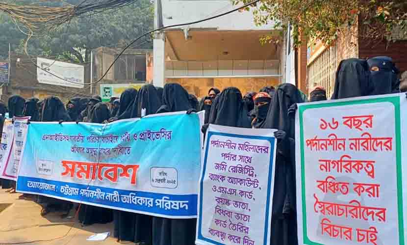 তারা আরও বলেন, শুধুমাত্র পরিপূর্ণ পর্দা করার কারণে পর্দানশীন নারীরা বৈষম্যের শিকার। গত ১৬ বছর যাবত অসংখ্য পর্দানশীন নারীর নাগরিকত্ব আটকে রাখা হয়েছে। শিক্ষাক্ষেত্রেও করা হচ্ছে বঞ্চিত। পরিচয় যাচাইয়ে জোর করে বেগানা পুরুষের সামনে চেহারা খুলতে বাধ্য করা হচ্ছে। পর্দনাশীন নারীরা এসব হেনস্থার অবসান চান।