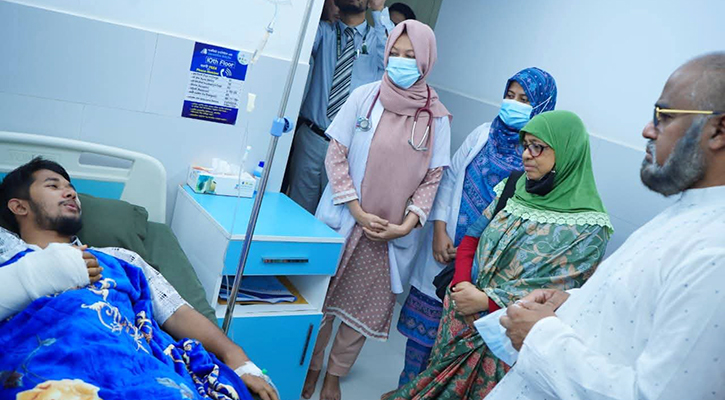 আহত শিক্ষার্থীদের শয্যাপাশে গিয়ে স্বাস্থ্য উপদেষ্টা শারীরিক খোঁজখবর নেন, চিকিৎসকদের কাছ থেকে চিকিৎসা অগ্রগতি সম্পর্কে জানতে চান এবং দ্রুত আরোগ্য কামনা করেন। পাশাপাশি তিনি উপস্থিত অভিভাবকদের সান্ত্বনা দেন ও সরকারের পক্ষ থেকে সম্ভাব্য সহযোগিতার আশ্বাস দেন।
